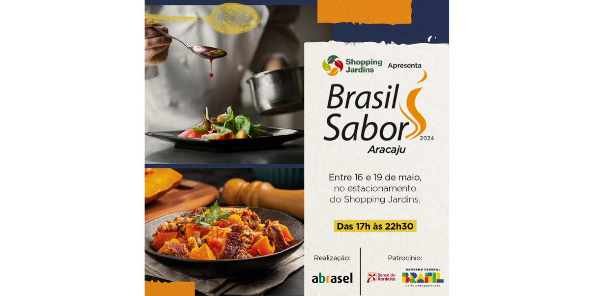 Aracaju será palco da 18ª edição do Brasil Sabor, promovido pela Abrasel. O evento, que é considerado o maior festival gastronômico do mundo, celebrará a diversidade da gastronomia brasileira sob o tema “Pra toda gente e pra todo gosto”, e acontece no estacionamento do Shopping Jardins, das 17h às 22h30, entre os dias 16 e 19 de maio.