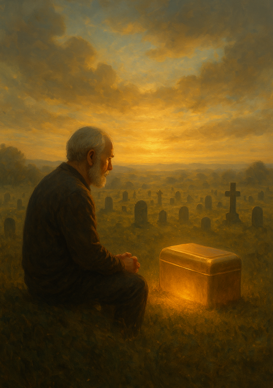 “Entre o tempo e a eternidade — um homem contempla o mistério da vida, guardando no silêncio o legado que o amor deixou” Imagem gerada a partir da IA