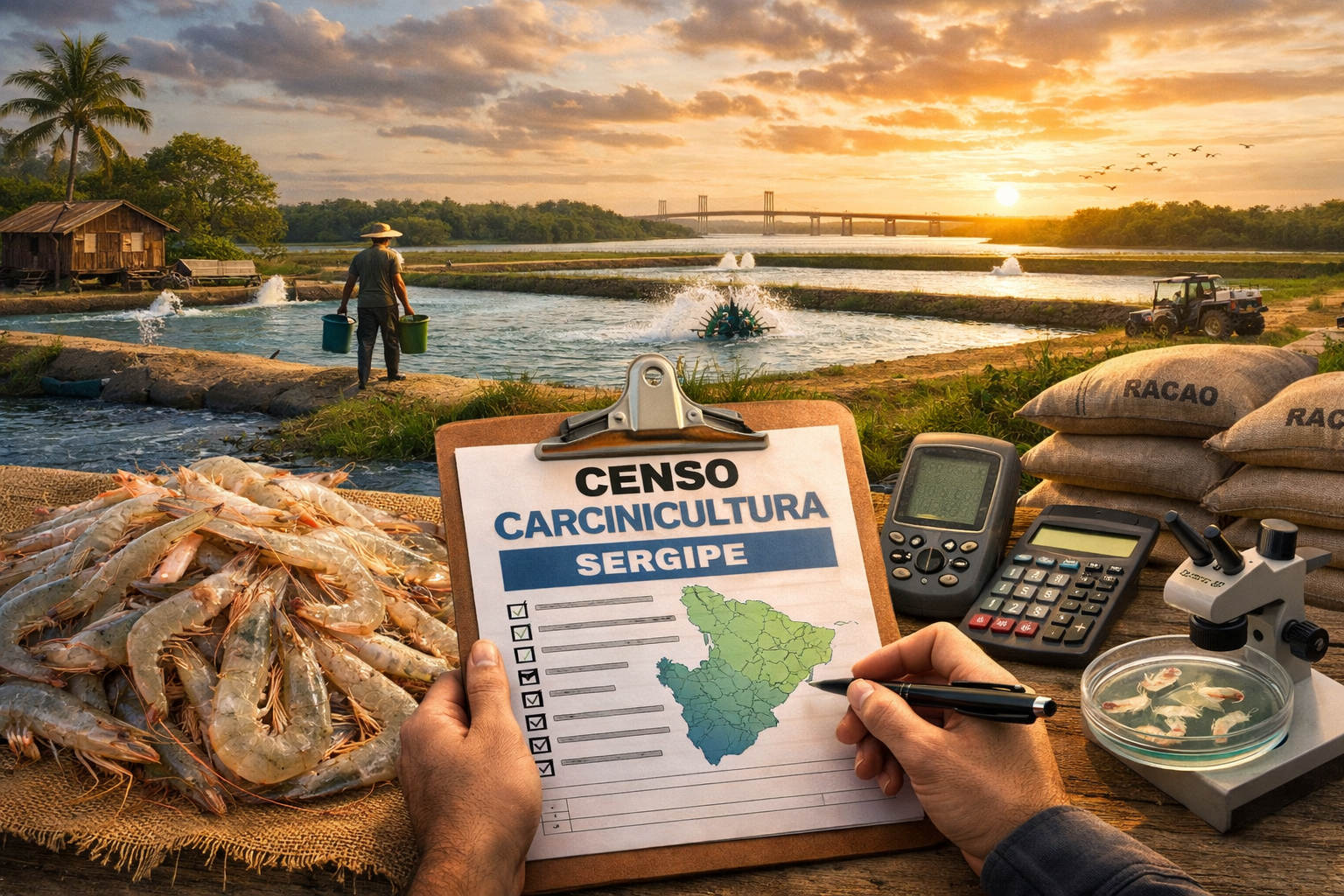 A Associação Brasileira de Criadores de Camarão está fazendo um censo inédito da carcinicultura em Sergipe, estado que ocupa atualmente a quarta posição entre os maiores produtores de camarão do país, com cerca de 150 milhões de reais movimentados por ano e um número estimado entre 500 e 800 produtores. O levantamento, que também abrange Alagoas, Ceará, Piauí e Paraíba — este último já concluído — tem como objetivo mapear detalhadamente a cadeia produtiva local, identificar gargalos e orientar um plano de desenvolvimento para o setor.