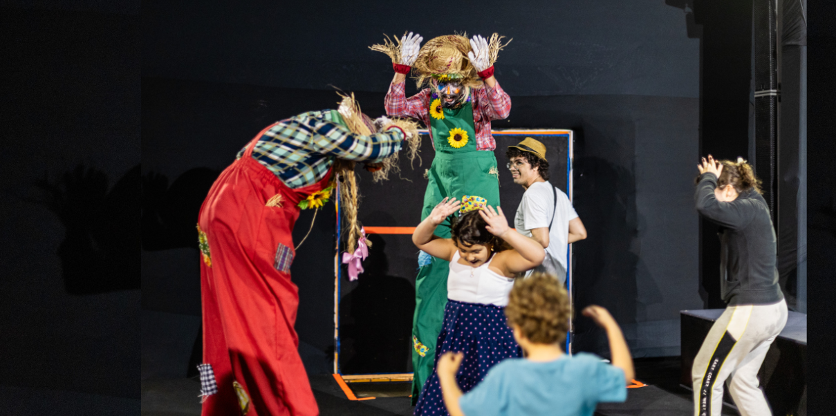 Os artistas, no espetáculo teatral, chamam atenção e dominam a arte de comunicar com emoção e clareza / Foto do teatro na Vila do Forró, por Thalys Rodrigues