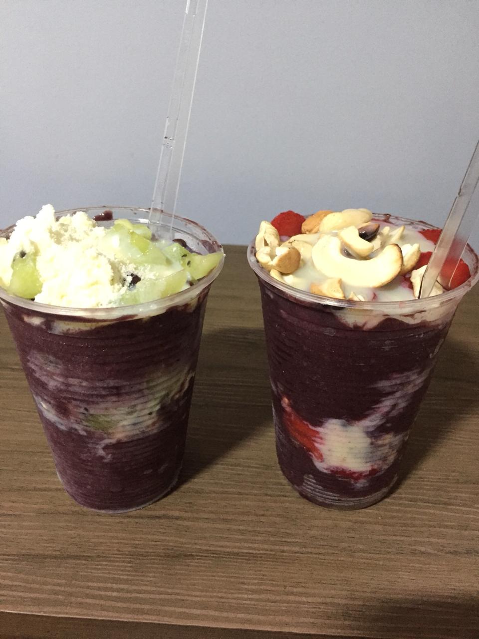 O açaí, que é disponibilizado em copos ou em tigelas, atualmente está gerando uma renda irrisória para o rapaz, sendo essa apenas utilizada para as compras de reposição dos acompanhamentos como amendoim, castanha, kiwi, creme de avelã, morango e paçoca.