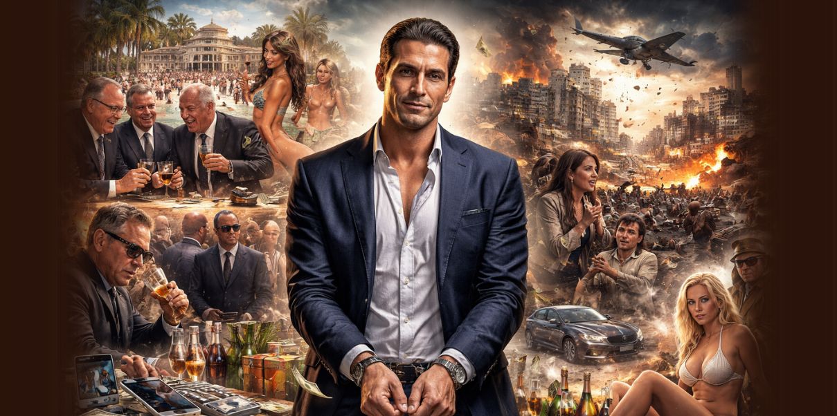 Entre o luxo e o caos, nasce e desmorona o mito de um homem feito de dinheiro e poder Imagem feita a partir da IA