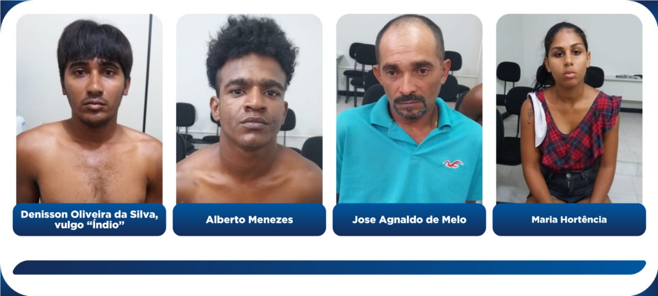 Na manhã desta terça-feira, 14, foi realizada uma operação conjunta de combate ao tráfico de drogas e homicídios, entre o Departamento de Homicídios e Proteção à Pessoa (DHPP) e o Grupo Especial de Repressão e Busca (GERB), no município de Riachão do Dantas. Quatro pessoas foram presas: Alberto Menezes, o “Lágrima”, José Agnaldo de Melo, o “Coroa”, Denisson Oliveira da Silva, conhecido por “Índio”, e a esposa dele Maria Hortência. Com eles foram apreendidas quatro armas de fogo, munições, balanças de precisão e uma pequena quantidade de drogas.