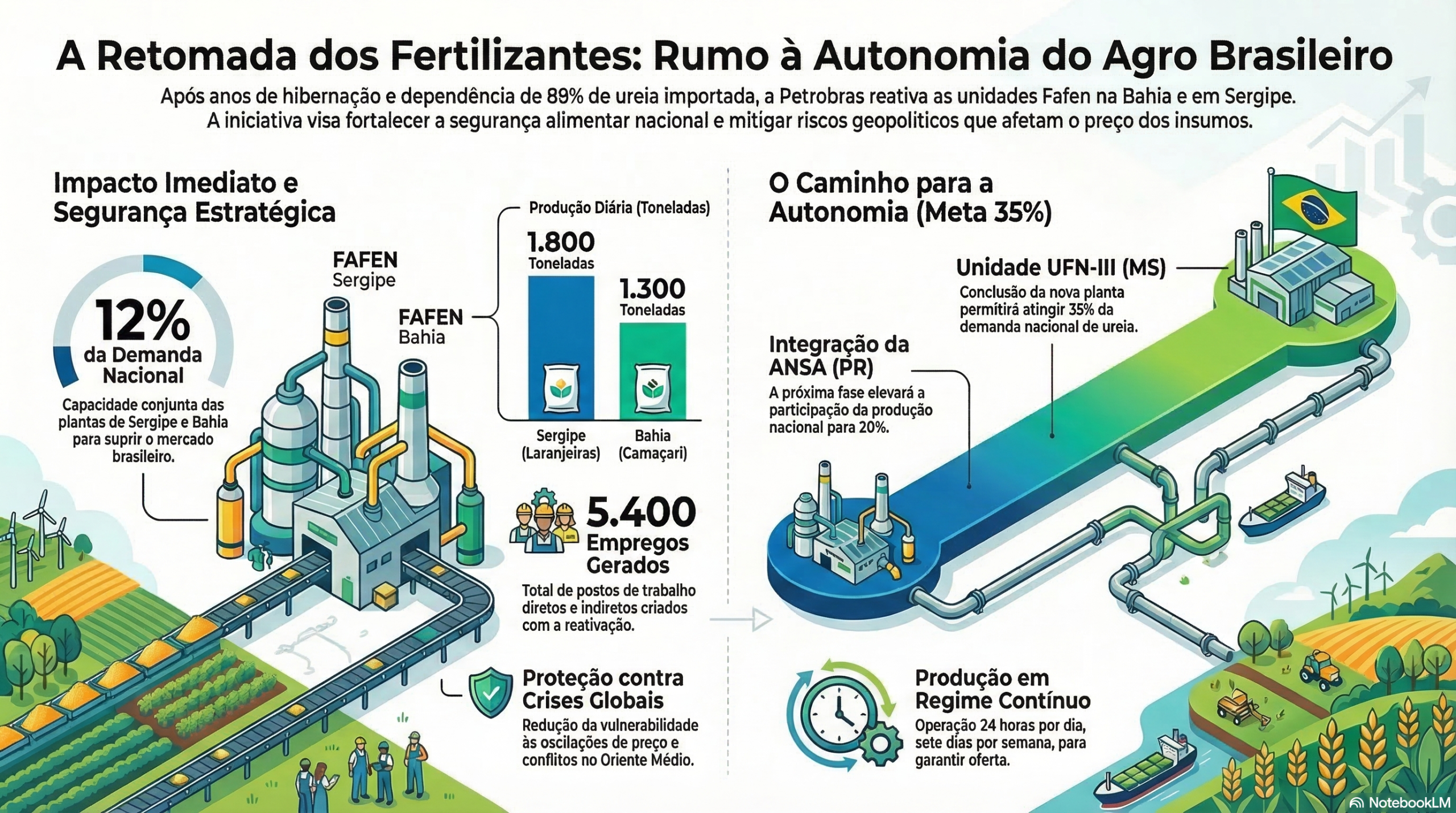 A retomada das duas unidades do Nordeste ocorre em um momento estratégico para o país. Juntas, as plantas têm capacidade para atender cerca de 12% da demanda nacional de ureia, fertilizante nitrogenado amplamente utilizado em culturas como milho, arroz, café, cana-de-açúcar e trigo.