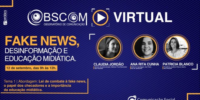 A edição do segundo semestre do Observatório de Comunicação – Obscom – também será virtual e acontecerá gratuitamente. O tema central dos próximos encontros, nos dias 12 e 19, tratará com especialistas reconhecidos no segmento sobre fake news, desinformação e educação midiática.