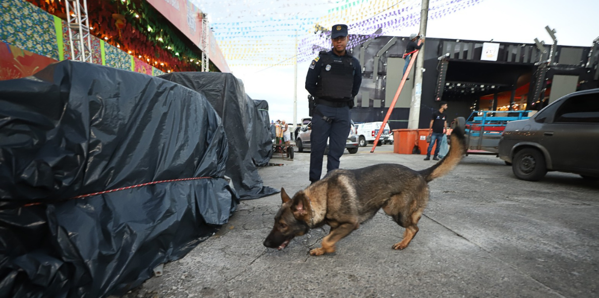Todas as noites, antes mesmo da abertura dos portões, as equipes da Guarda Municipal fazem o patrulhamento com o auxílio de quatro cães farejadores, sendo duas cadelas da raça pastor alemão, um rottweiler e um pastor-belga Malinois. Todos eles são devidamente treinados em um canil da própria administração municipal, e através do olfato, conseguem identificar drogas escondidas nos mais diversos locais.