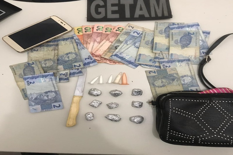 Ao avistar o Getam, Alessandra tentou se esconder entre os ônibus que estavam estacionados no terminal, mas os policiais perceberam. Ao revistar a bolsa, os militares encontram nove papelotes com maconha e cinco cápsulas com cocaína, além de uma faca, um telefone celular e R$ 102,00.