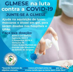 A Grande Loja Maçônica do Estado de Sergipe (GLMES) iniciou uma campanha para arrecadar recursos financeiros para aquisição de luvas, máscaras e álcool em gel que deverão ser entregues a hospitais na capital e interior. Essa é uma das maneiras da maçonaria colaborar com aqueles que estão cuidando das vítimas do novo coronavírus no Estado.