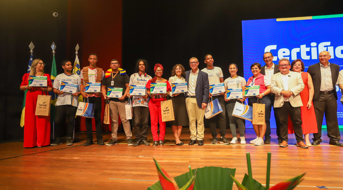 O Governo de Sergipe, por meio da Secretaria de Estado da Educação e da Cultura (Seduc), e em parceria com o Serviço Nacional de Aprendizagem Comercial (Senac), realizou nesta quarta-feira, 18, a segunda edição do projeto ‘Jovens Preparados, Sergipe Mais Forte’. Em solenidade no Teatro Tobias Barreto, em Aracaju, o governador Fábio Mitidieri entregou certificados a mais de dois mil estudantes matriculados em 15 cursos profissionalizantes de formação inicial e continuada.