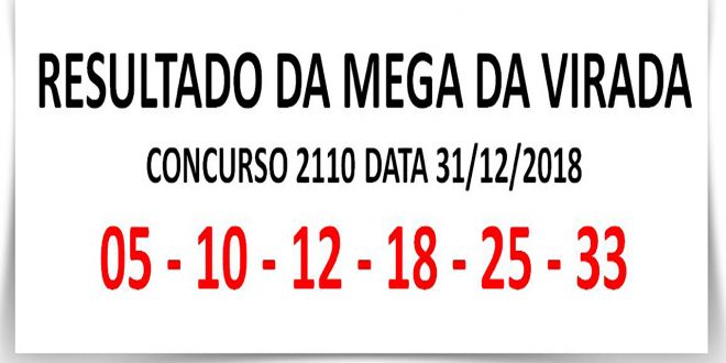 Os números da Mega da Virada sorteados hoje, 31, foram: 05, 10, 12, 18, 25 e 33. Nesta edição, o prêmio de R$ 302.536.382,66, será dividido entre 52 apostadores, sendo que cada um deles vai receber R$ 5,8 milhões.