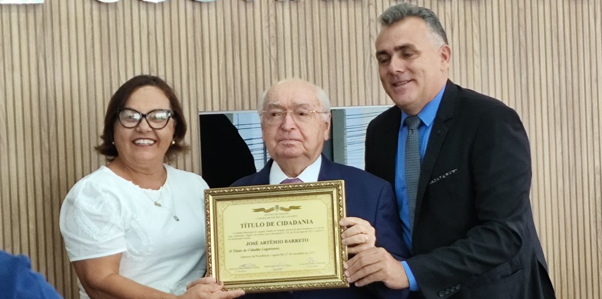 Na última quinta-feira, 27, ele foi agraciado com mais uma honraria, que além da sua importância cívica, tem um valor pessoal e emocional singular, por razões que apresento mais à frente. Em sessão da Câmara de Vereadores, foi-lhe conferido o título de Cidadão Lagartense, em consonância com a Resolução nº 006, de 19 de maio de 2015, de autoria da então vereadora Marta Maria de Carvalho Nascimento, a pedido da deputada estadual Goretti Reis, ambas presentes à solenidade, presidida pelo vereador Washington da Mariquita.
