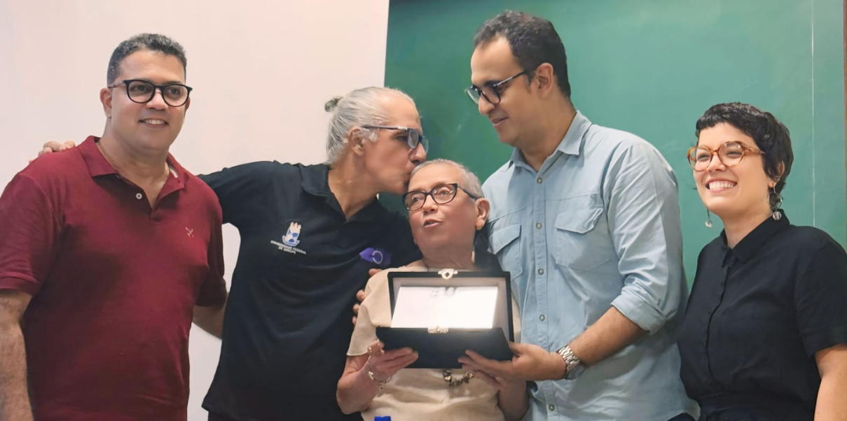 No último dia 5 de dezembro, a professora Verônica Nunes foi, com muita justiça e merecimento, homenageada, por ocasião do encerramento do XIII Encontro de Pesquisadores Iniciantes das Humanidades (IH), promovido pelo Programa de Educação Tutorial do Departamento de História (PET História UFS), sob a tutoria do Prof. Dr. Luís Eduardo Pina Lima. Estavam presentes, além deste que escreve, a Profª. Drª. Natália Abreu Damaceno e Prof. Dr. Dilton Cândido Maynard, Pró-Reitor de Graduação. Pega de surpresa, ela ficou muito emocionada, e, ao receber a Placa de Honra ao Mérito, disse da sua alegria de estar vivendo aquele momento, destacando os anos que dedicou à docência na instituição. A professora Maria Magna lhe dirigiu algumas palavras de saudação e de gratidão.