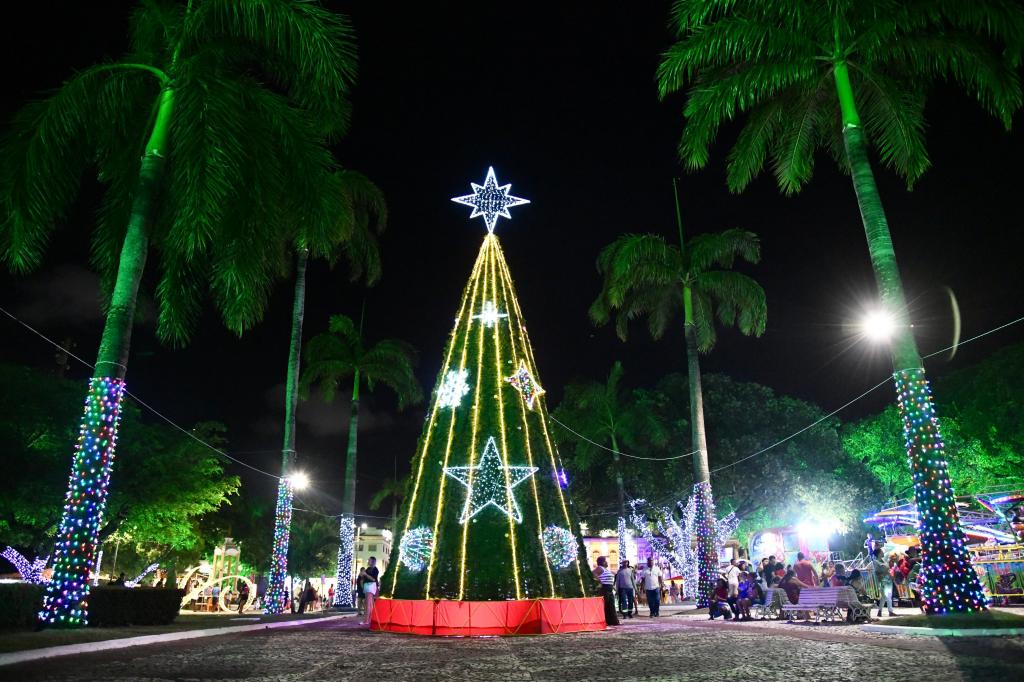 O prefeito Edvaldo Nogueira e o diretor-presidente da Federação do Comércio de Bens, Serviços e Turismo de Sergipe (Fecomércio/SE), Marcos Andrade, acenderam, nesta quinta-feira, 28, as luzes do Natal Iluminado das praças Fausto Cardoso, Almirante Barroso e Olímpio Campos. Em sua oitava edição, a decoração especial do Centro conta com mais de 6 milhões de pontos de luz, permanecendo aberta ao público até o dia 6 de janeiro de 2025. Além da ornamentação da área, a programação inclui apresentações musicais e a parada de Natal, aos fins de semana, com desfile de músicos e atores circenses.