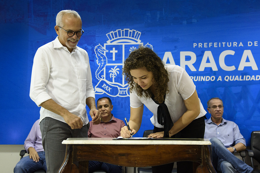 Carollina Tosta assinando a parceria com a Prefeitura de Aracaju Foto: Marco Vieira