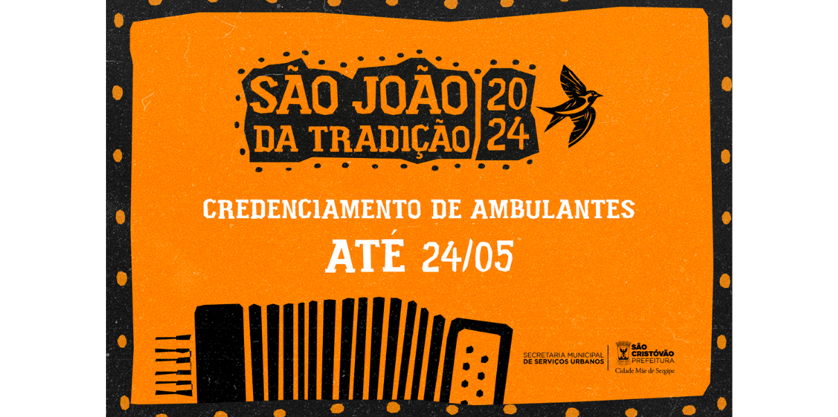 Através da Secretaria Municipal de Serviços Urbanos (Semsurb), a Prefeitura de São Cristóvão disponibiliza o cadastro para o comércio eventual e ambulante do São João da Tradição 2024, que será realizado nos dias 14 e 15 de junho no Largo da Estação Ferroviária, Centro Histórico; e 05 e 06 de julho no Centro Comercial Armando Batalha de Góis, no Eduardo Gomes. O chamamento público será feito no modo online até o dia 24 de maio e os interessados deverão acessar o site da Prefeitura para realizar a sua inscrição.
