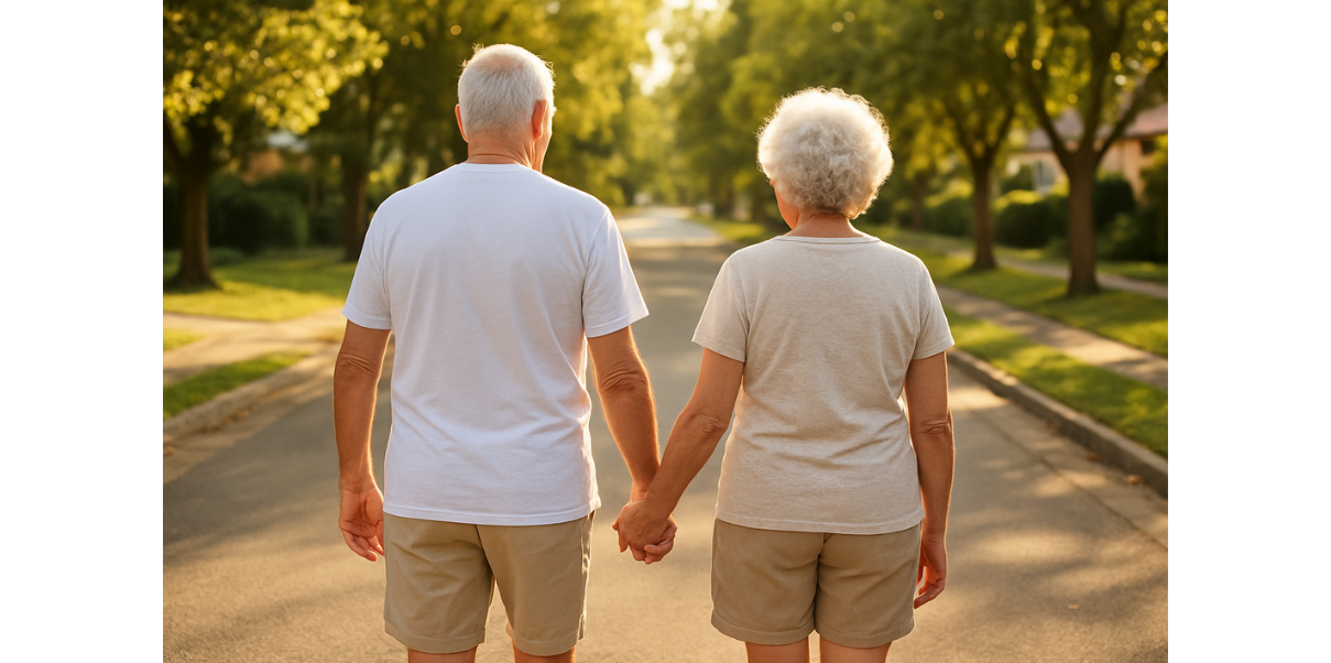 Idosos fazem uma caminhada, passam empatia e tranquilidade Imagem gerada a partir da IA