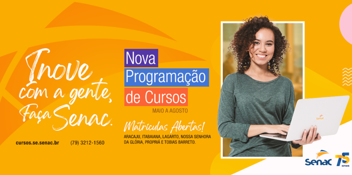 Quer conferir nossas novidades e toda programação completa? Acesse o site cursos.se.senac.br e obtenha informações necessárias para a matrícula e os descontos do plano de fidelização que podem ser encontrados no site (www.se.senac.br). Mais informações através do telefone (79) 3212-1560.