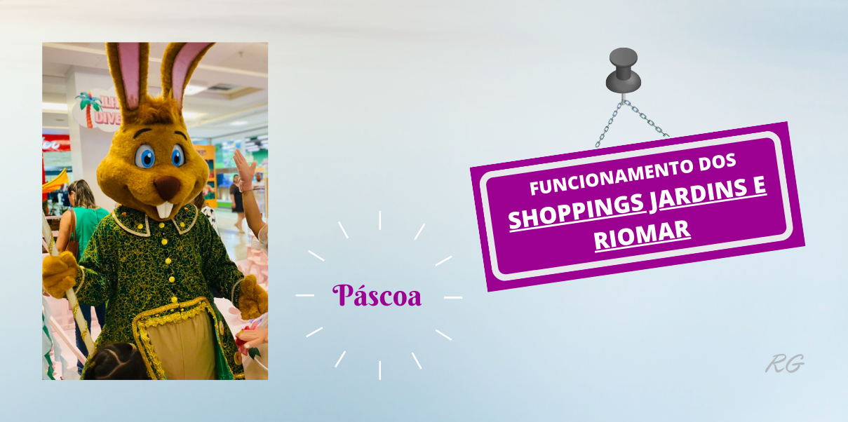 Em virtude das celebrações da Páscoa, os shoppings do Grupo JCPM em Aracaju operam em horário diferenciado no dia 7 de abril. Nesta sexta-feira, os restaurantes, praças de alimentação e operações de lazer abrem do meio-dia às 21 horas. As demais lojas estarão fechadas. No sábado e no domingo, 8 e 9 de abril, os shoppings Jardins e RioMar funcionam normalmente.